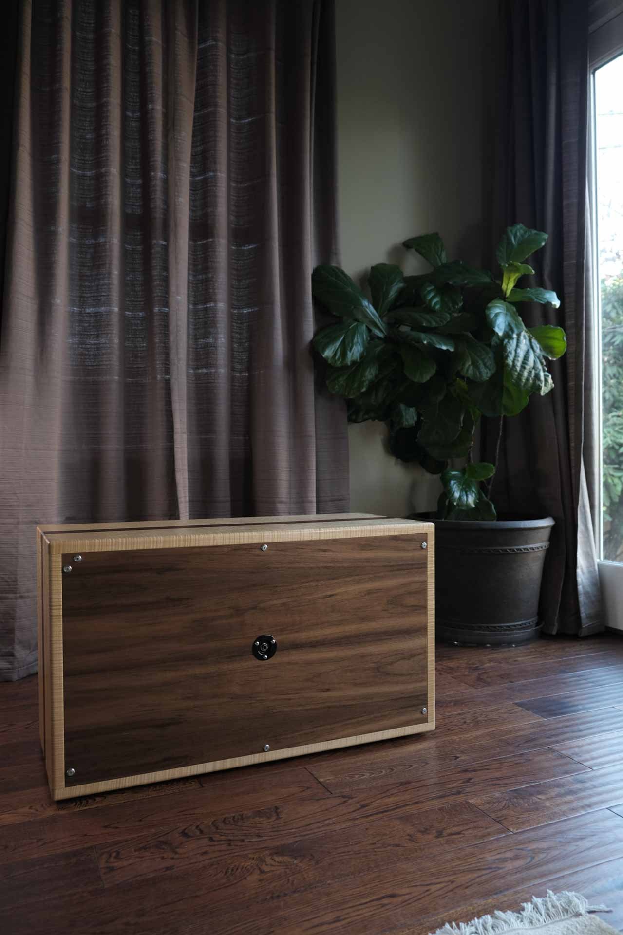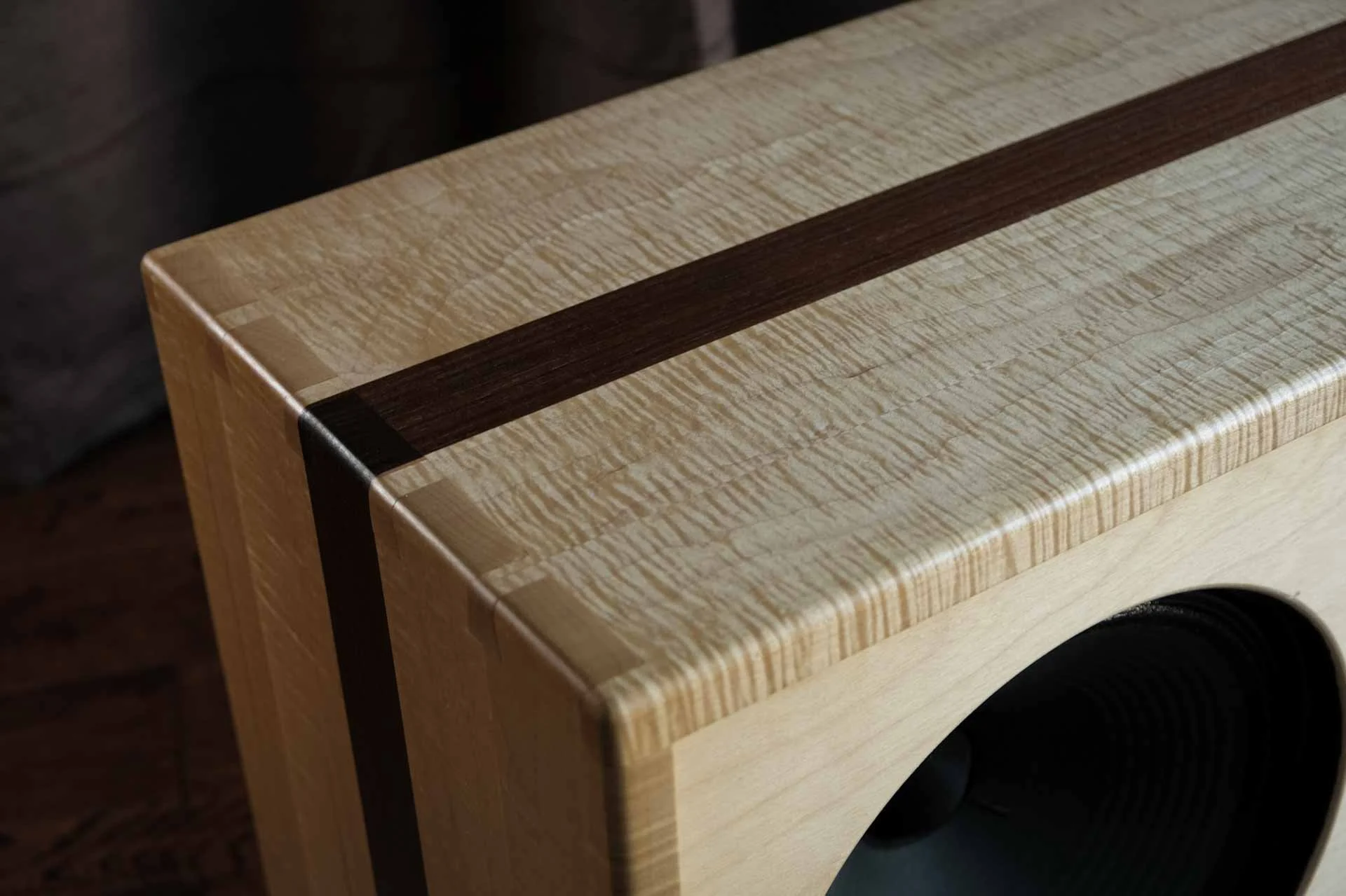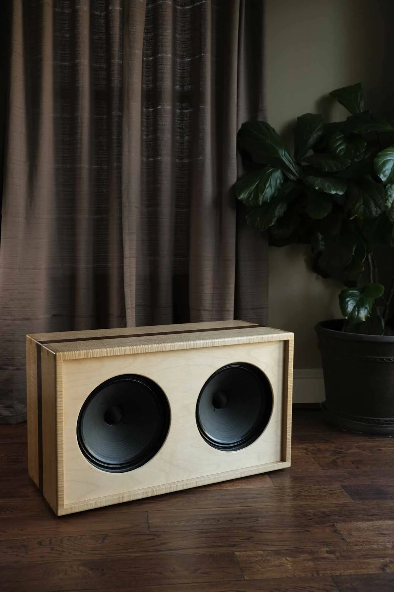 CURLY MAPLE + WALNUT 2x12 SPEAKER CABINETMATERIALCurly Maple + Peruvian WalnutFINISHNatural Oil + Wax Finish